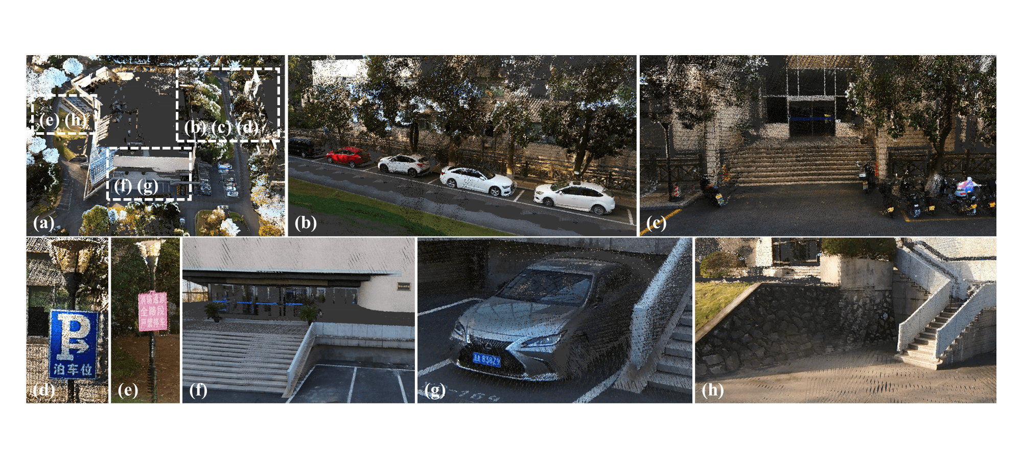 The colorized point cloud generated by our system depicts a campus scene at Zhejiang University.
